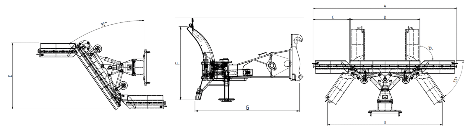 | Tuotenro | Malli | A (mm) Max. Leveys | B (mm) Leveys | C (mm) Lisäsiipien leveys | D (mm) Leveys | E (mm) Leveys | F (mm) Leveys | G (mm) Leveys | Paino (kg) |
