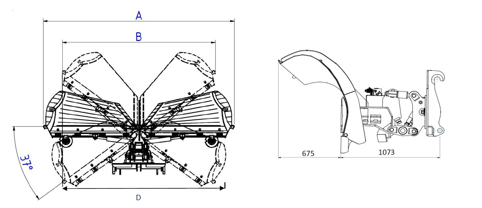 | Tuotenro | Malli | A (mm) Työleveys | B (mm) Kapein auraus | D (mm) Siipien korkeus | D (mm) Leveys | Terien määrä | Paino (kg) |