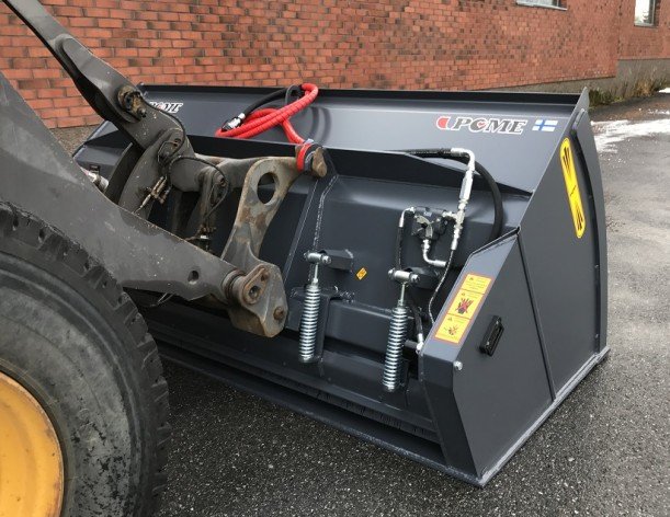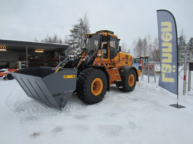 Kattavasta lisävarustevalikoimasta voi valita esimerkiksi hydraulisen lautasviskurin kauhan alle, joka mahdollistaa isojen alueiden nopean hiekoittamisen samalla kauhalla, jolla hiekoitetaan kapeatkin välit.