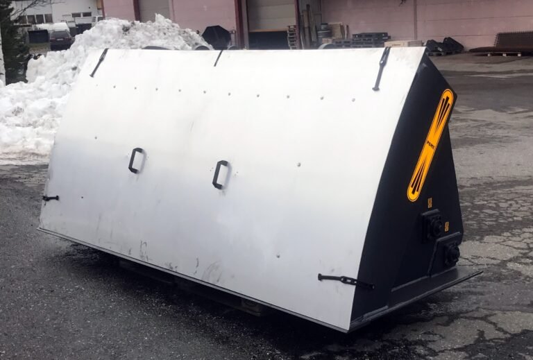 Hiekoituskauhoihimme saa lisävarusteena myös hydraulisen kallistusrungon, joka mahdollistaa kauhan käytön takanostolaitteissa jotka eivät kallistu.